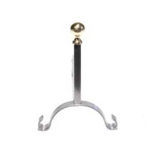 2 Chenêts Têtes Boules Rondes Laiton sans collerette – Pieds fer plats Volutes