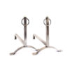 2 Chenêts Têtes Boules Rondes Laiton sans collerette – Pieds fer plats Volutes CH LA 127