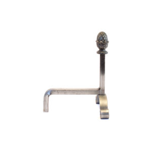 2 Chenêts Têtes Pommes de Pin Acier – Pieds fer plats Volutes
